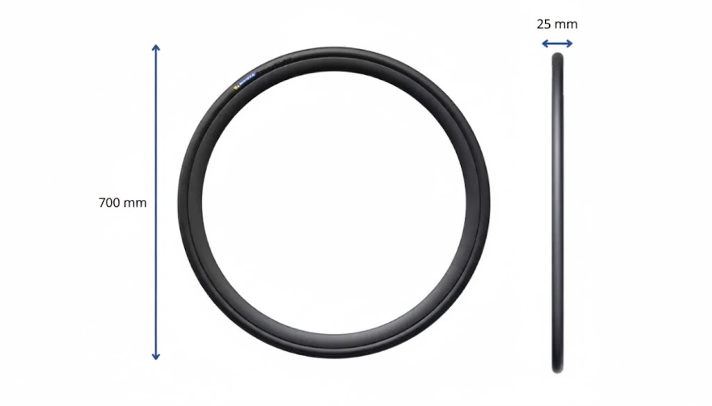 타이어 측면에는 라이딩에 필수적인 정보들이 숫자로 표기되어 있습니다. 가장 중요한 것은 타이어 사이즈로, 흔히 700x25C와 같이 표기됩니다. 여기서 700은 타이어의 외경을, 25C는 타이어의 폭(너비)이 25mm임을 나타냅니다. 최근에는 승차감과 구름 저항 측면에서 유리한 25C나 28C 등 더 넓은 폭의 타이어가 선호되는 추세입니다.