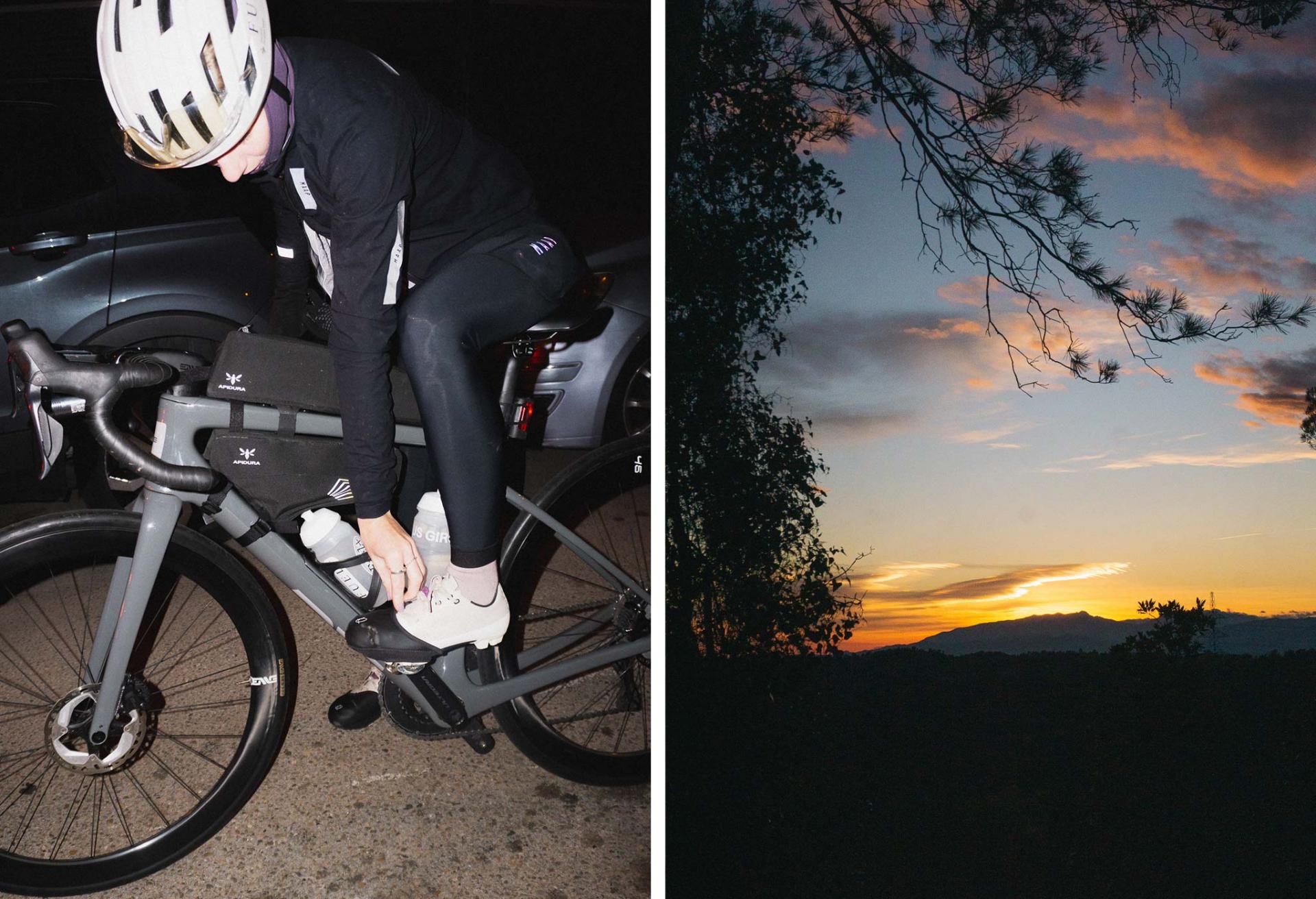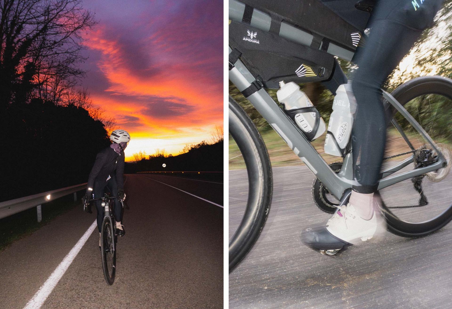 Aleix: 겨울동지는 일 년 중 가장 짧은 날이기 때문에 뭔가 특별한 걸 해보려고 했어요. 그 기회를 놓치지 않으려고 했죠. 며칠 전, 멀리서 피레네 산의 눈 덮인 봉우리들을 보면서 우리는 그곳으로 가야 한다고 생각했어요. 계획은 새벽부터 출발해 해가 뜰 때부터 지기까지 달리고, 끝으로 밤에 집으로 돌아오는 거였죠. 빛이나 추위에 구애받지 않고, 그 라이딩을 진정으로 의미 있는 모험으로 만들고자 했어요.