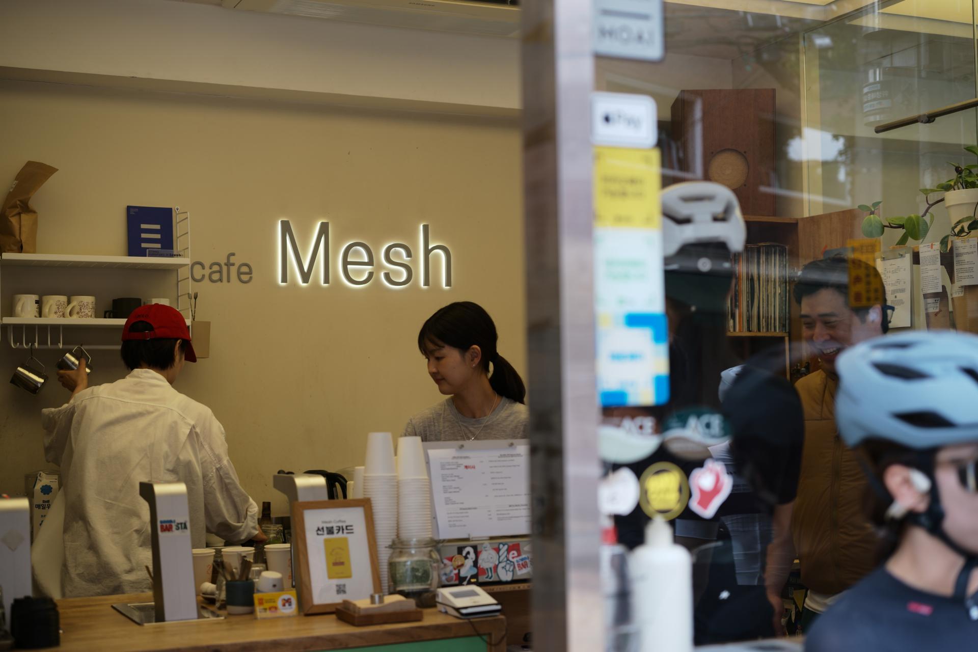 라이딩의 중간, 성수동의 로컬 플레이스 MESH 메쉬 커피에 도착했습니다. 안장 아래에서 마시는 커피 한 잔은, 짧지만 깊은 휴식이었습니다. 메쉬커 (Mesh Coffee)는 서울 성동구 서울숲길 43에 위치한 스페셜티 커피 전문점으로, 성수동의 대표적인 커피 문화 공간 중 하나입니다. 김현섭, 김기훈 바리스타가 이끄는 이 카페는 2015년 성수동이 지금처럼 활기를 띠기 전부터 자리를 지켜왔으며, 지역 커피 신(scene)의 중심으로 자리매김했습니다.