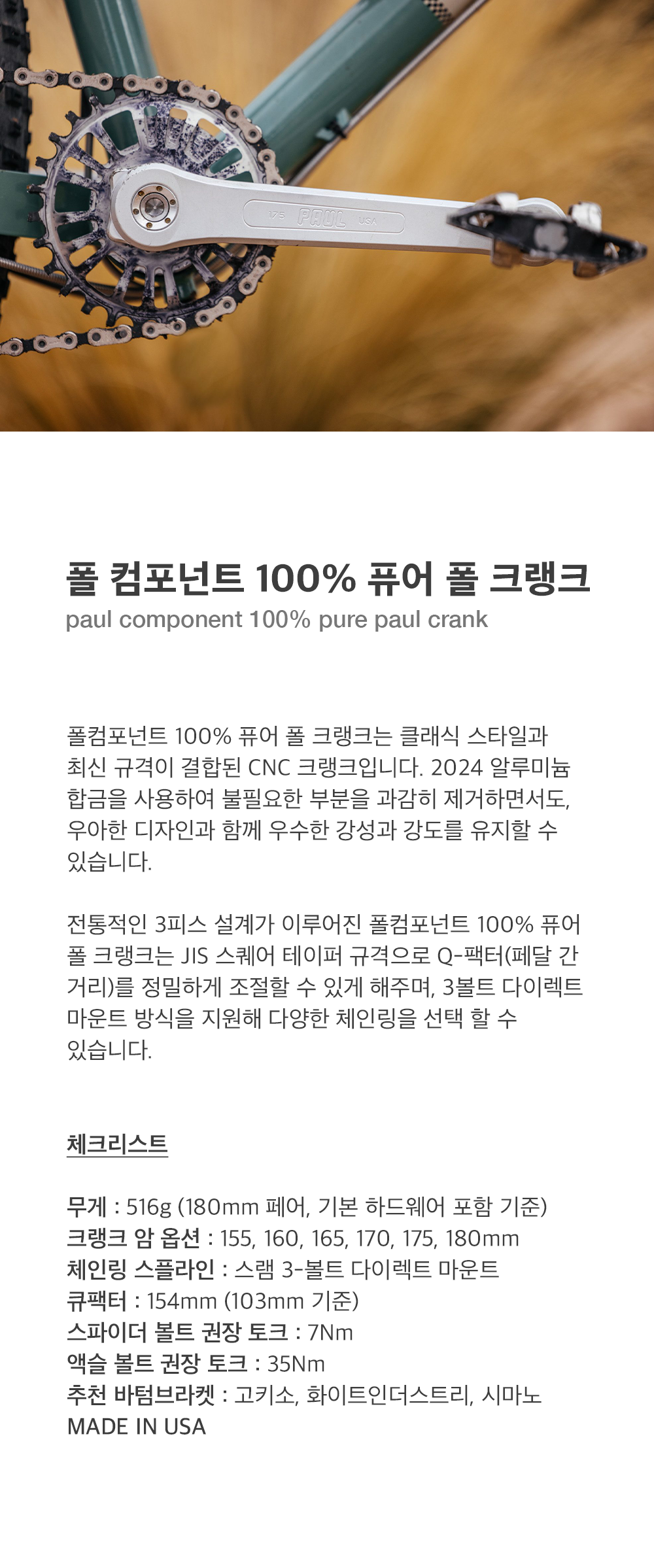 - 크랭크 암 옵션 : 155, 160, 165, 170, 175, 180mm