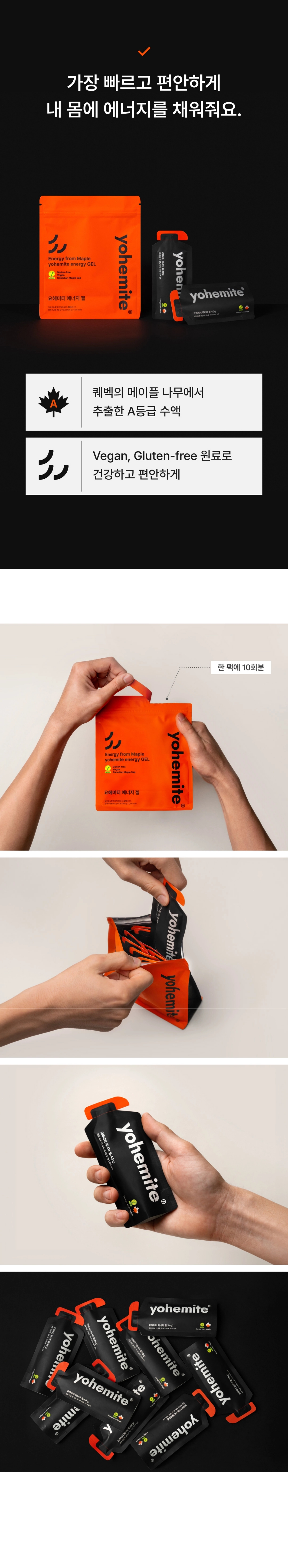 - 캐나다산 메이플 수액이 담긴 요헤미티 에너지 젤 (1팩 당 10포)