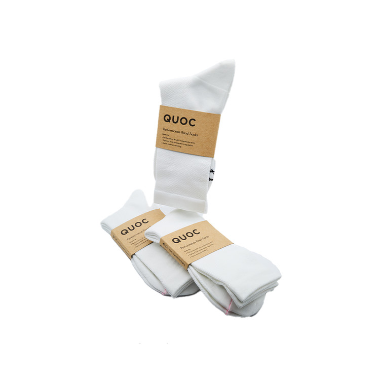 QUOC 쿽 퍼포먼스 로드 삭스는 쿨맥스(Coolmax) 소재를 혼합하여 라이딩 중 뜨겁게 올라올 수 있는 발 온도를 상쾌한 수준으로 유지시켜 줍니다. 또한 나일론 혼방 소재로 빠르게 땀을 흡수하고 발산하여 라이딩의 시작과 끝을 처음과 같은 컨디션으로 유지시켜줍니다.