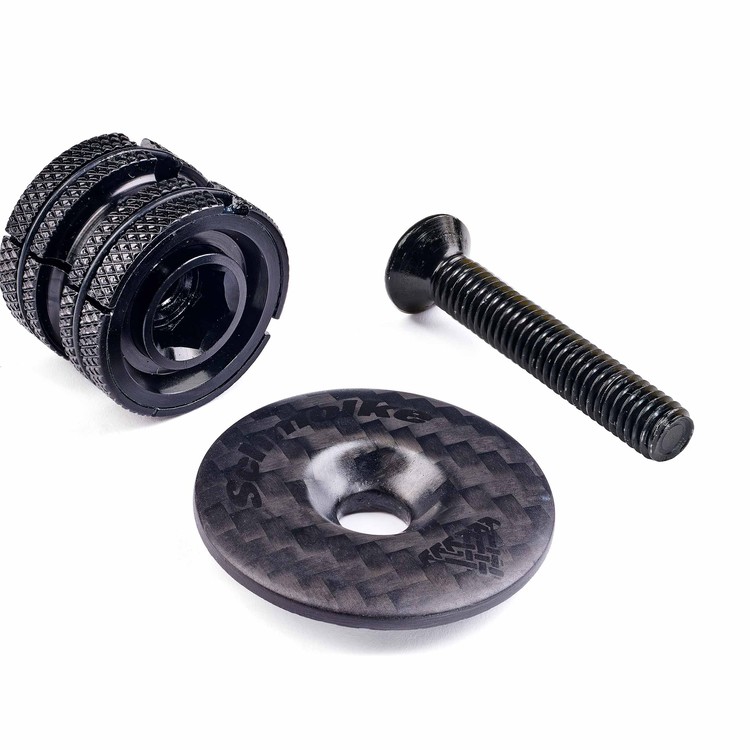 쉬몰케 익스텐더 SL은 독일에서 제작된 초경량 스티어러 플러그로, 21 mm~25.2 mm 직경의 카본 및 알루미늄 포크 스티어러에 대응합니다. 일반 크로우너트 대신 확장식 구조로 스티어러 내부를 넓혀 헤드셋 클램핑을 균일하게 해주며, 민감한 카본 포크에도 안전하게 사용 가능합니다. 7075-T6 알루미늄 바디와 카본 캡 구성으로 전체 무게는 약 16 g에 불과해 초경량 빌드에 이상적입니다.