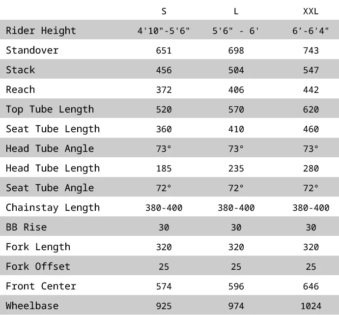 - 타이어 클리어런스: 20×2.3″ (펜더 포함)