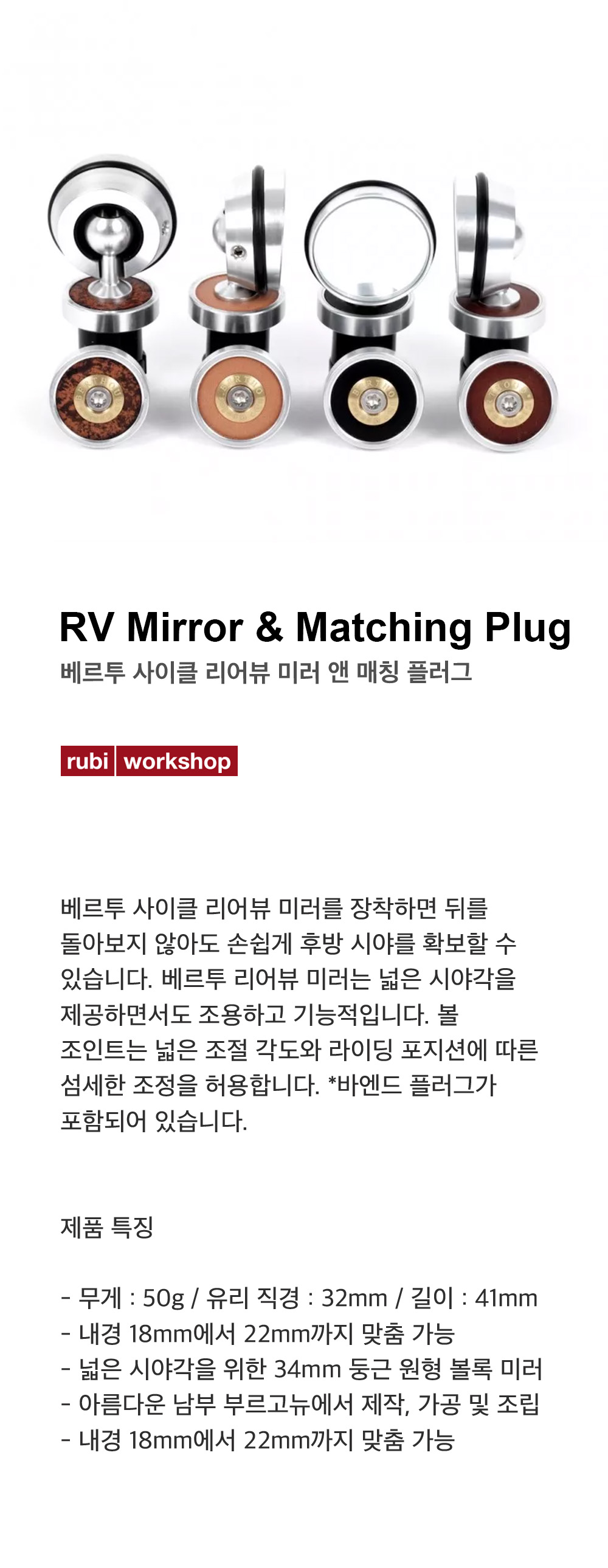베르투 사이클 리어뷰 미러 매칭 플러그 블랙/블랙