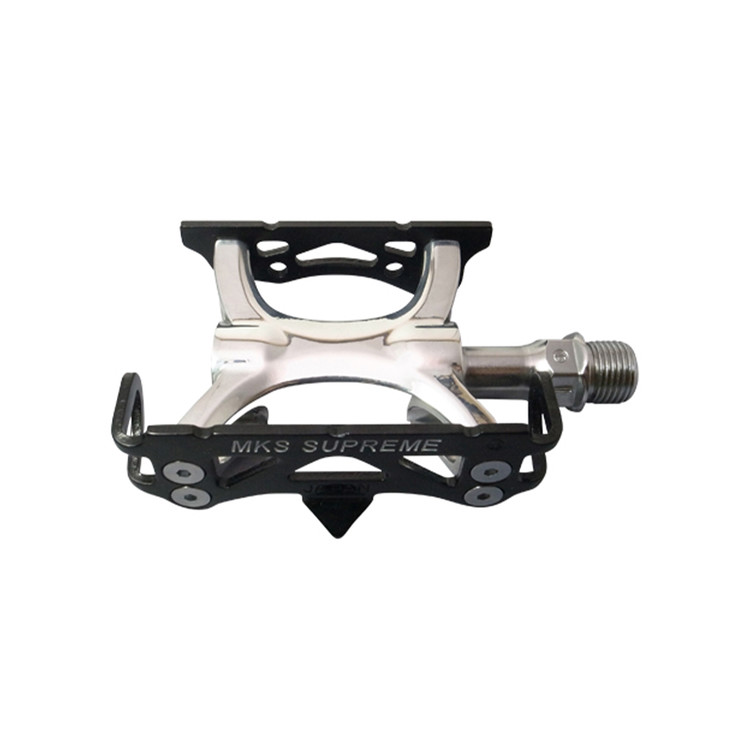 MKS 슈프림은 트랙 레이스를 위한 플래그십 레이싱 페달입니다. MKS 슈프림은 더욱 강화된 페달 액슬과 플레이트를 적용하였습니다. 구름저항을 최소화한 프리미엄 실드 베어링은 뛰어난 퍼포먼스를 제공합니다.