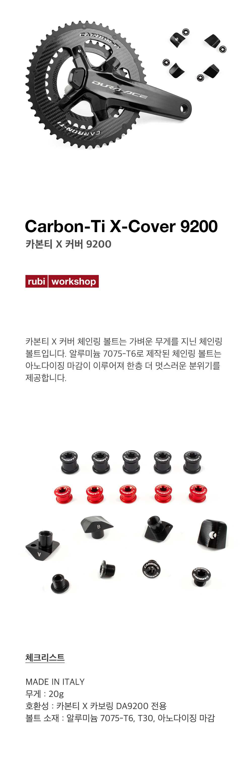 카본티 엑스 커버 체인링 볼트는 가벼운 무게를 지닌 체인링 볼트입니다. 알루미늄 7075-T6로 제작된 체인링 볼트는 아노다이징 마감이 이루어져 한층 더 멋스러운 분위기를 제공합니다.