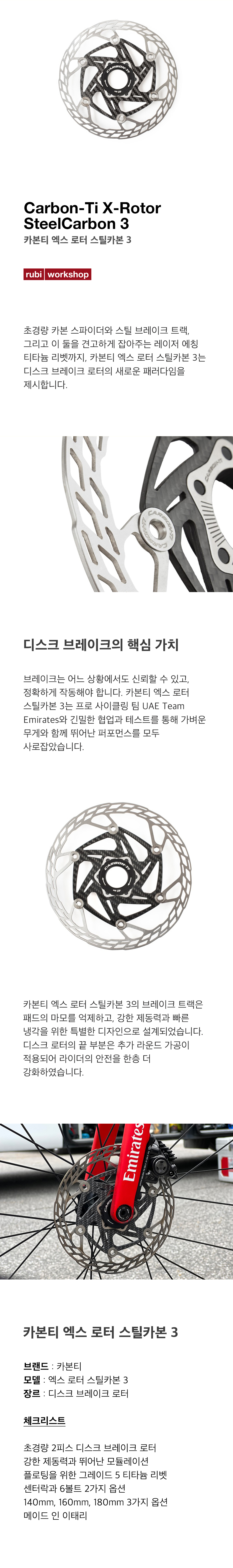 초경량 카본 스파이더와 스틸 브레이크 트랙, 그리고 이 둘을 견고하게 잡아주는 레이저 에칭 티타늄 리벳까지, 카본티 엑스 로터 스틸카본 3는 디스크 브레이크 로터의 새로운 패러다임을 제시합니다.