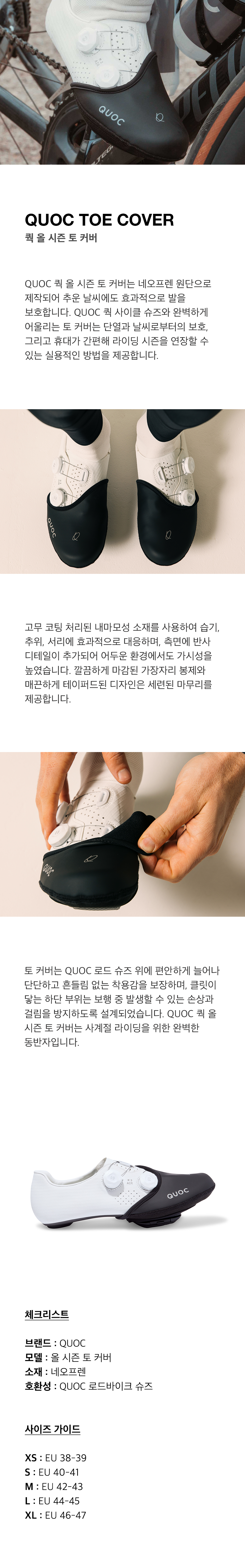 QUOC 쿽 올 시즌 토 커버는 네오프렌 원단으로 제작되어 추운 날씨에도 효과적으로 발을 보호합니다. QUOC 쿽 사이클 슈즈와 완벽하게 어울리는 토 커버는 단열과 날씨로부터의 보호, 그리고 휴대가 간편해 라이딩 시즌을 연장할 수 있는 실용적인 방법을 제공합니다.