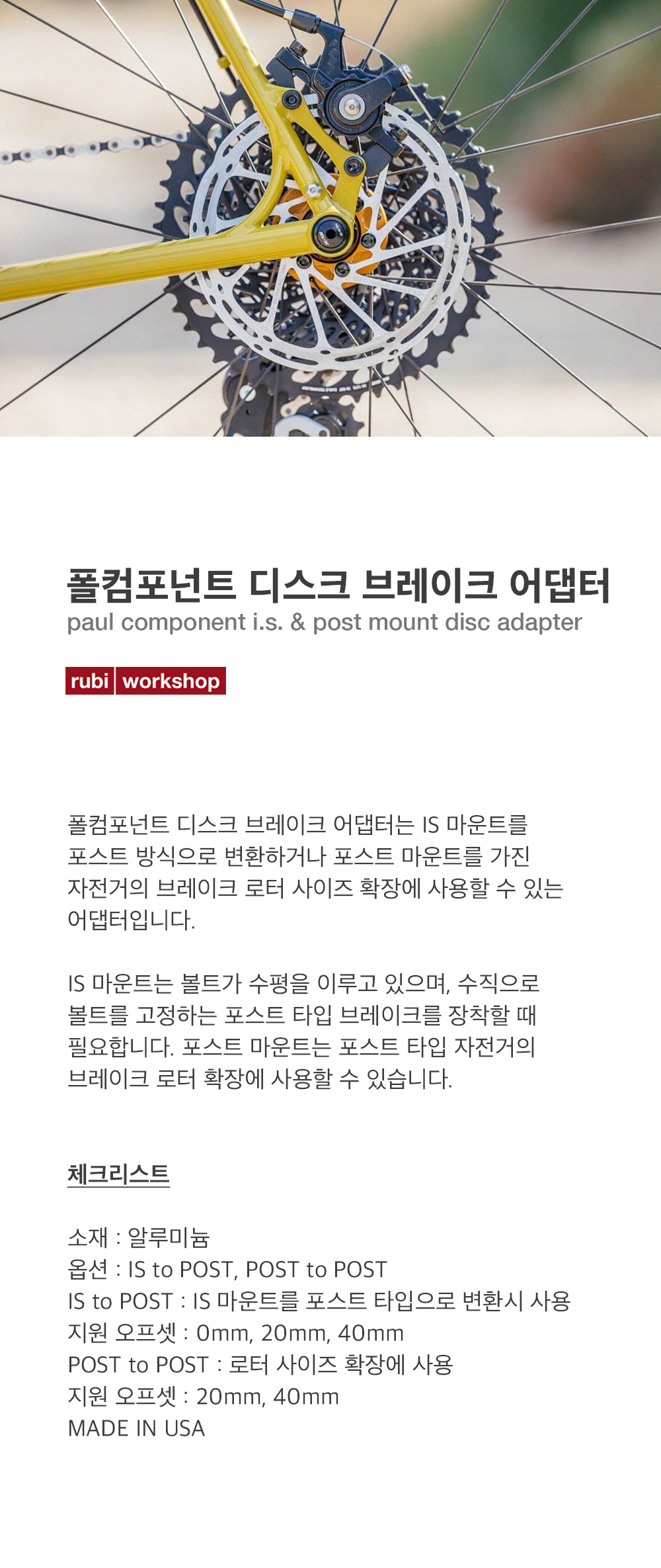 폴컴포넌트 디스크 브레이크 어댑터는 IS 마운트를 포스트 방식으로 변환하거나 포스트 마운트를 가진 자전거의 브레이크 로터 사이즈 확장에 사용할 수 있는 어댑터입니다.