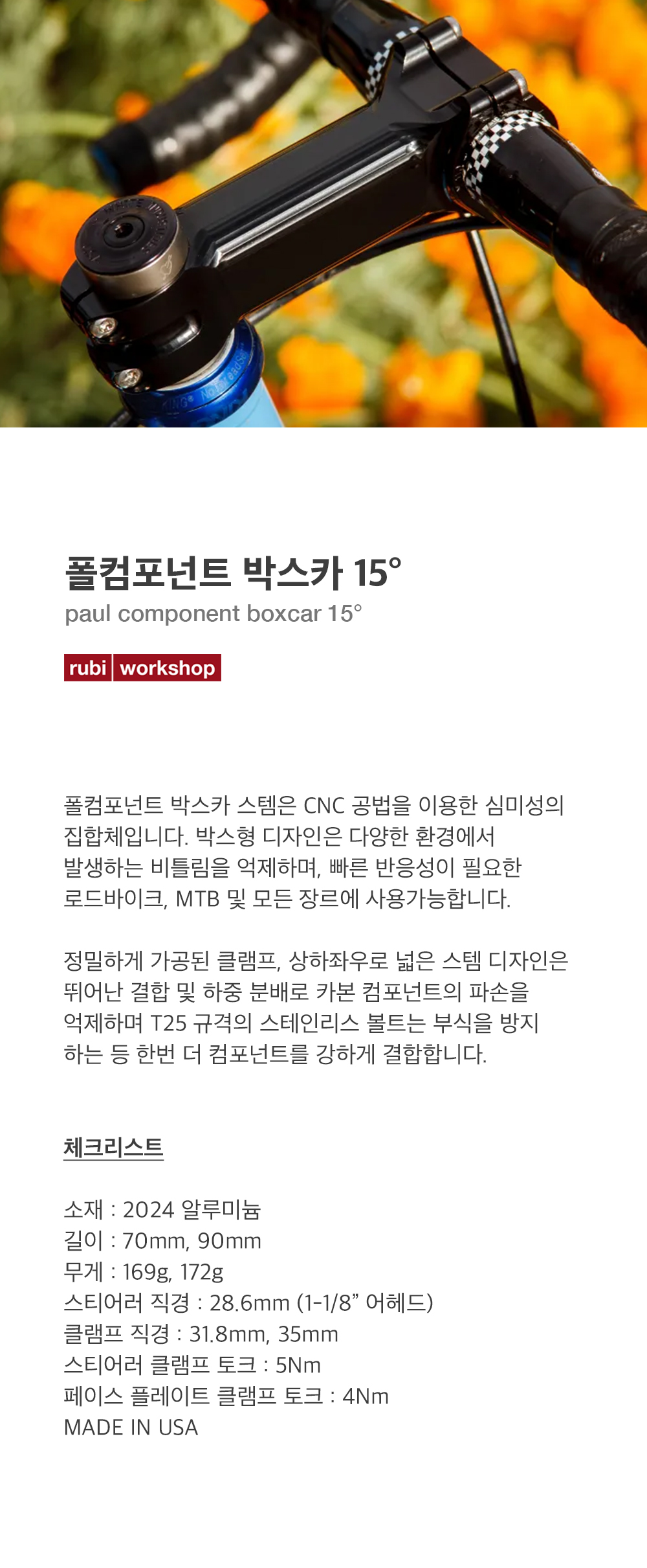 폴 컴포넌트 박스카 스템은 CNC 공법을 이용한 심미성의 집합체입니다. 박스형 디자인은 다양한 환경에서 발생하는 비틀림을 억제하며, 빠른 반응성이 필요한 로드바이크, MTB 및 모든 장르에 사용가능합니다.
