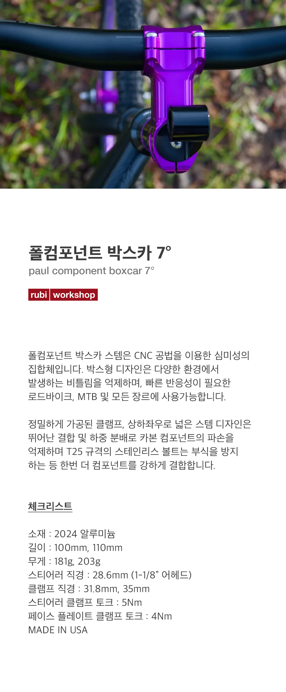 폴 컴포넌트 박스카 스템은 CNC 공법을 이용한 심미성의 집합체입니다. 박스형 디자인은 다양한 환경에서 발생하는 비틀림을 억제하며, 빠른 반응성이 필요한 로드바이크, MTB 및 모든 장르에 사용가능합니다.