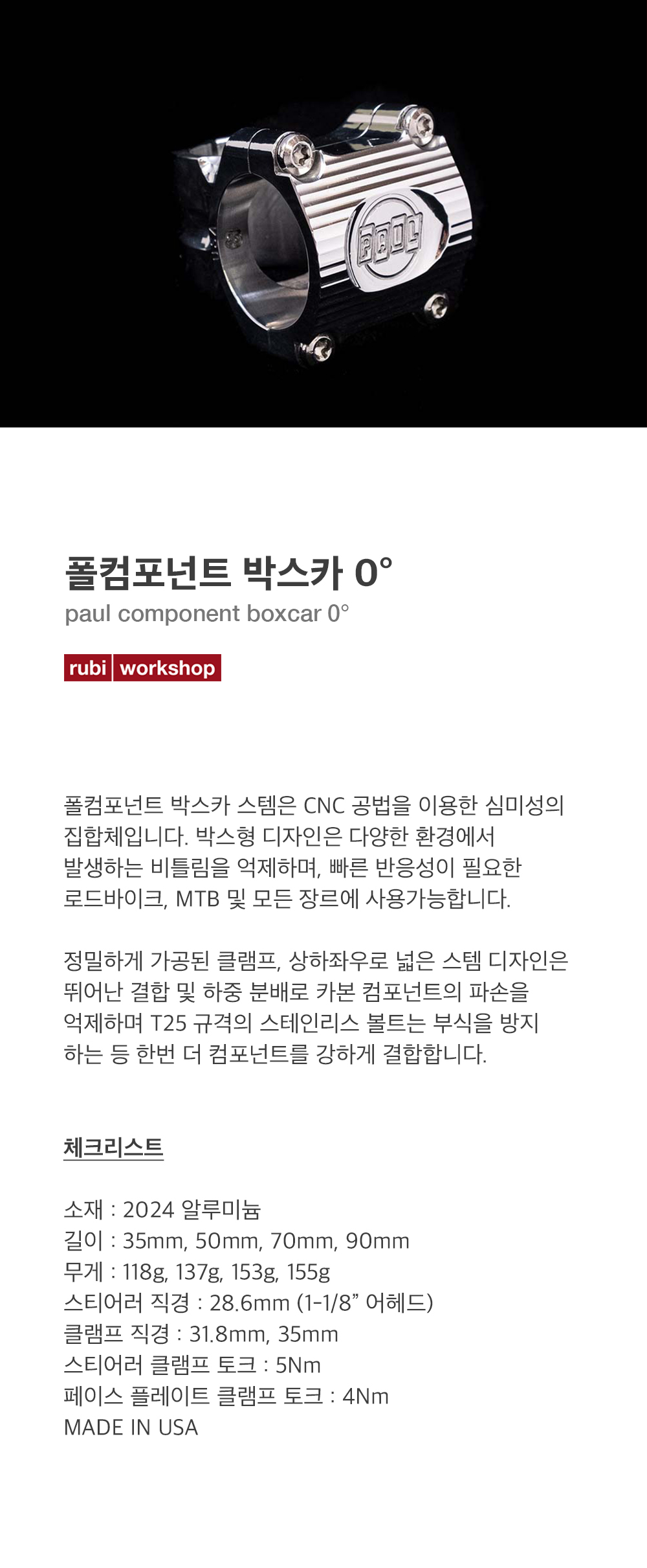 폴 컴포넌트 박스카 스템은 CNC 공법을 이용한 심미성의 집합체입니다. 박스형 디자인은 다양한 환경에서 발생하는 비틀림을 억제하며, 빠른 반응성이 필요한 로드바이크, MTB 및 모든 장르에 사용가능합니다.
