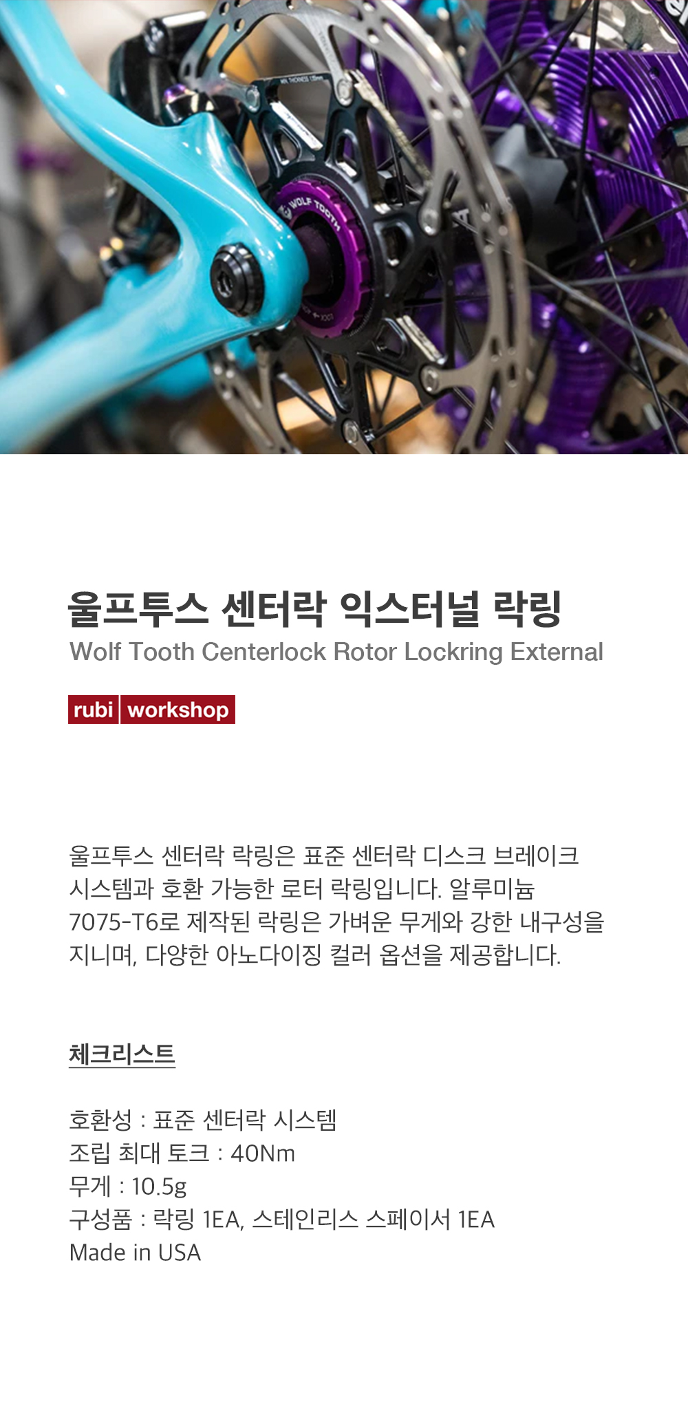 울프투스 센터락 락링은 표준 센터락 디스크 브레이크 시스템과 호환 가능한 로터 락링입니다. 알루미늄 7075-T6로 제작된 락링은 가벼운 무게와 강한 내구성을 지니며, 다양한 아노다이징 컬러 옵션을 제공합니다.